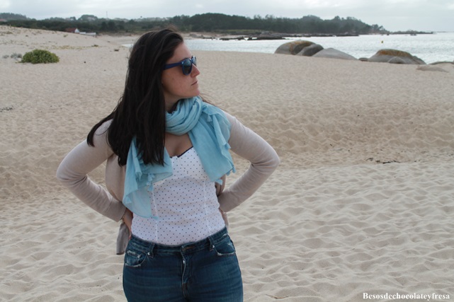 Hoy os traigo un look cómodo para recorrer las distintas playas de el área de Reboredo en el Grove hasta llegar a la ermita de Nuestro Señora de la Lanzada. Playa de Las Pipas, Areagrande...