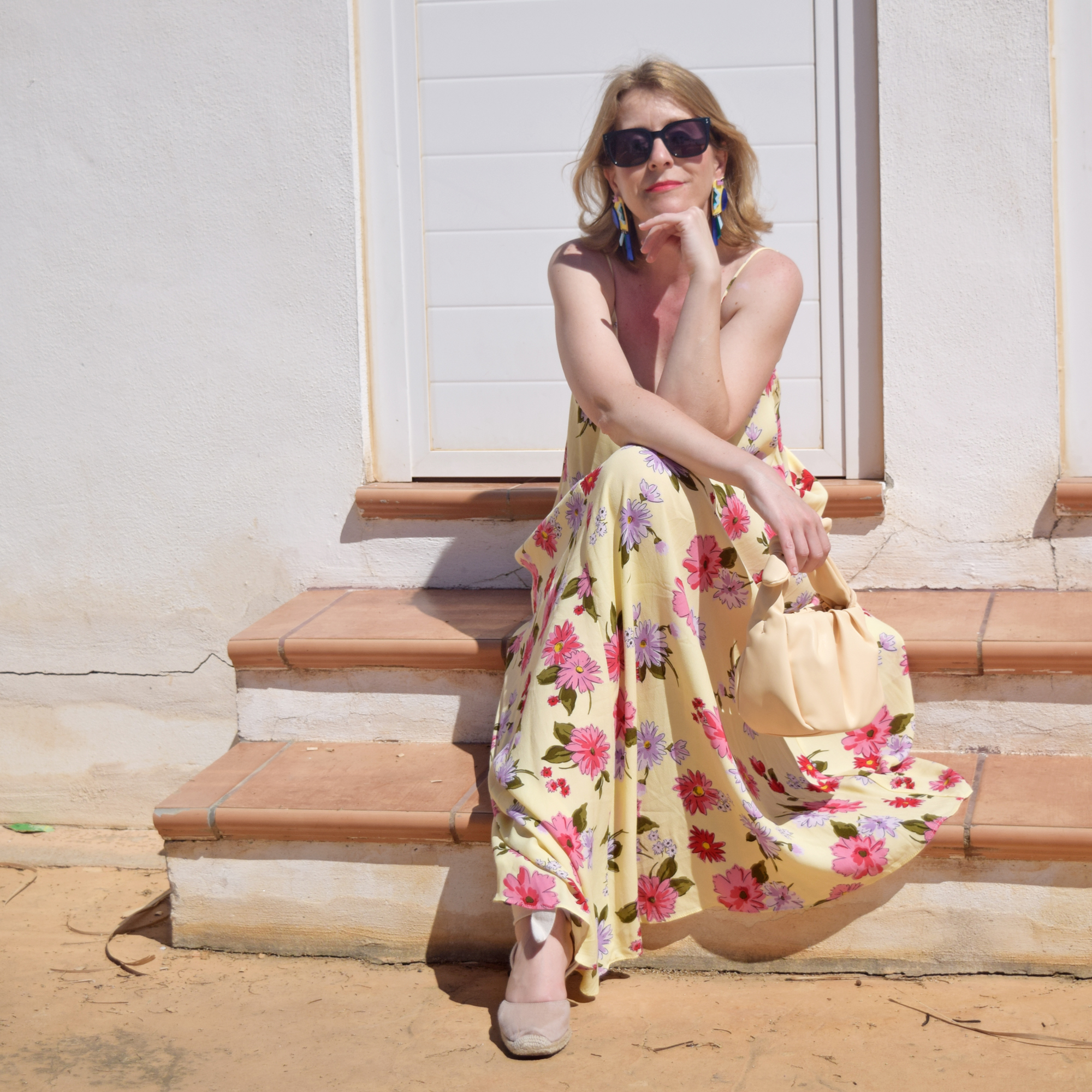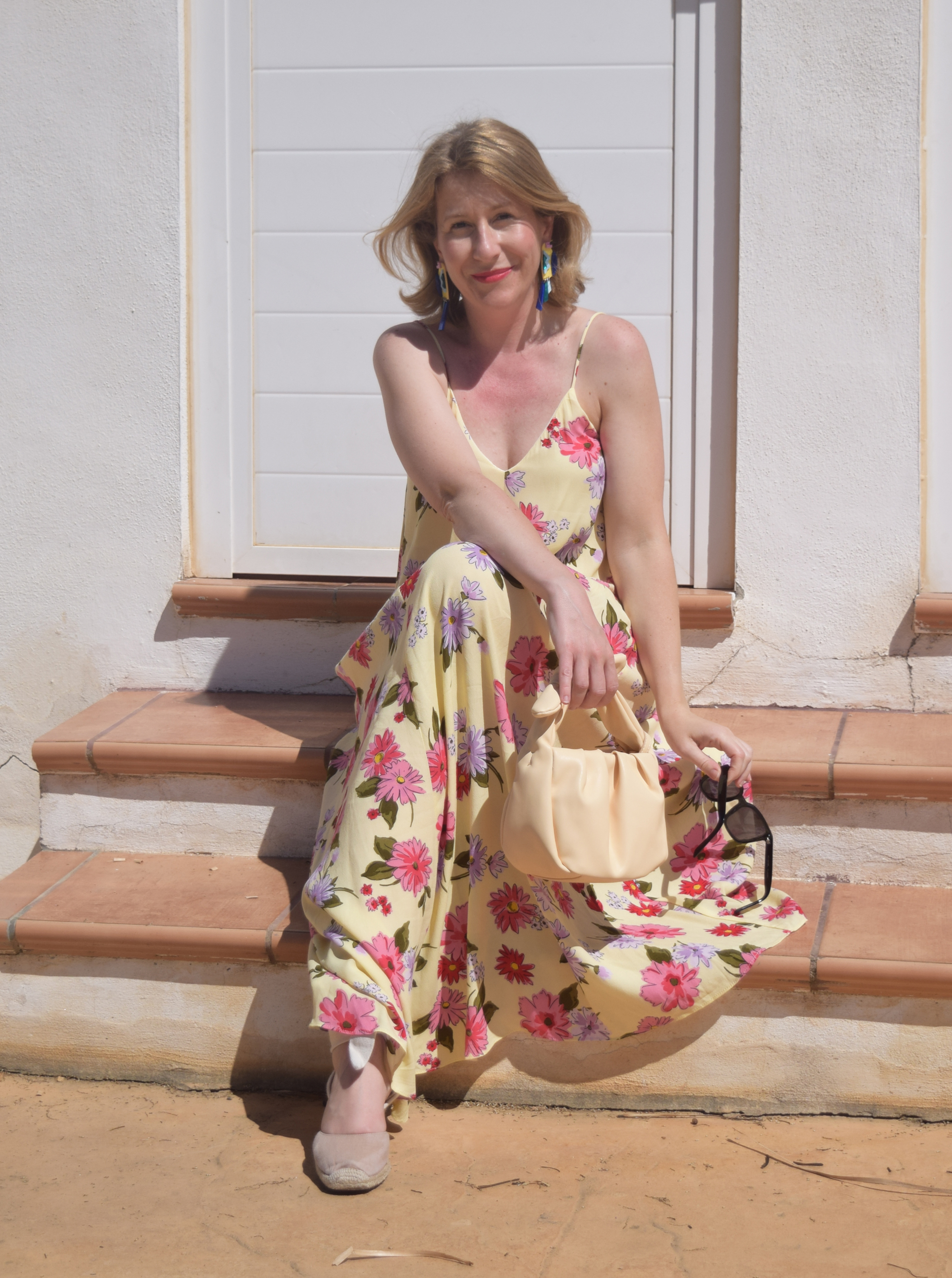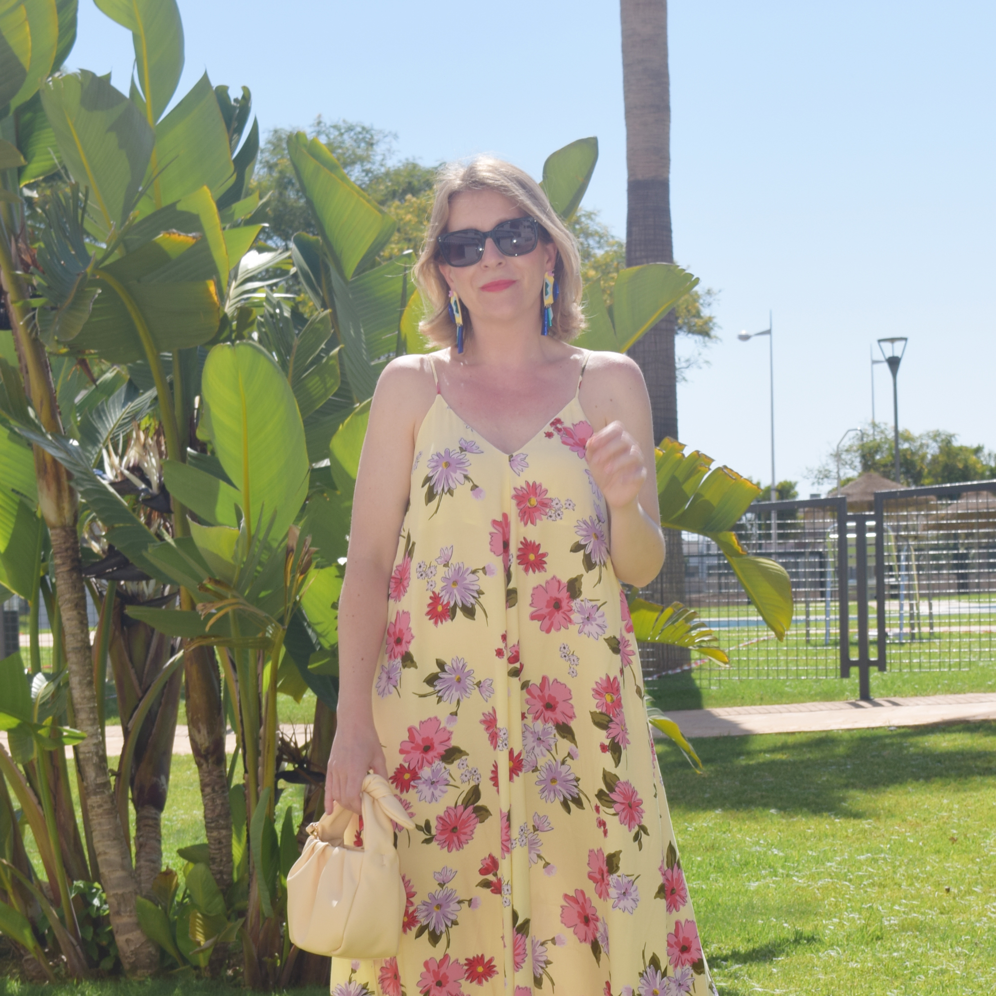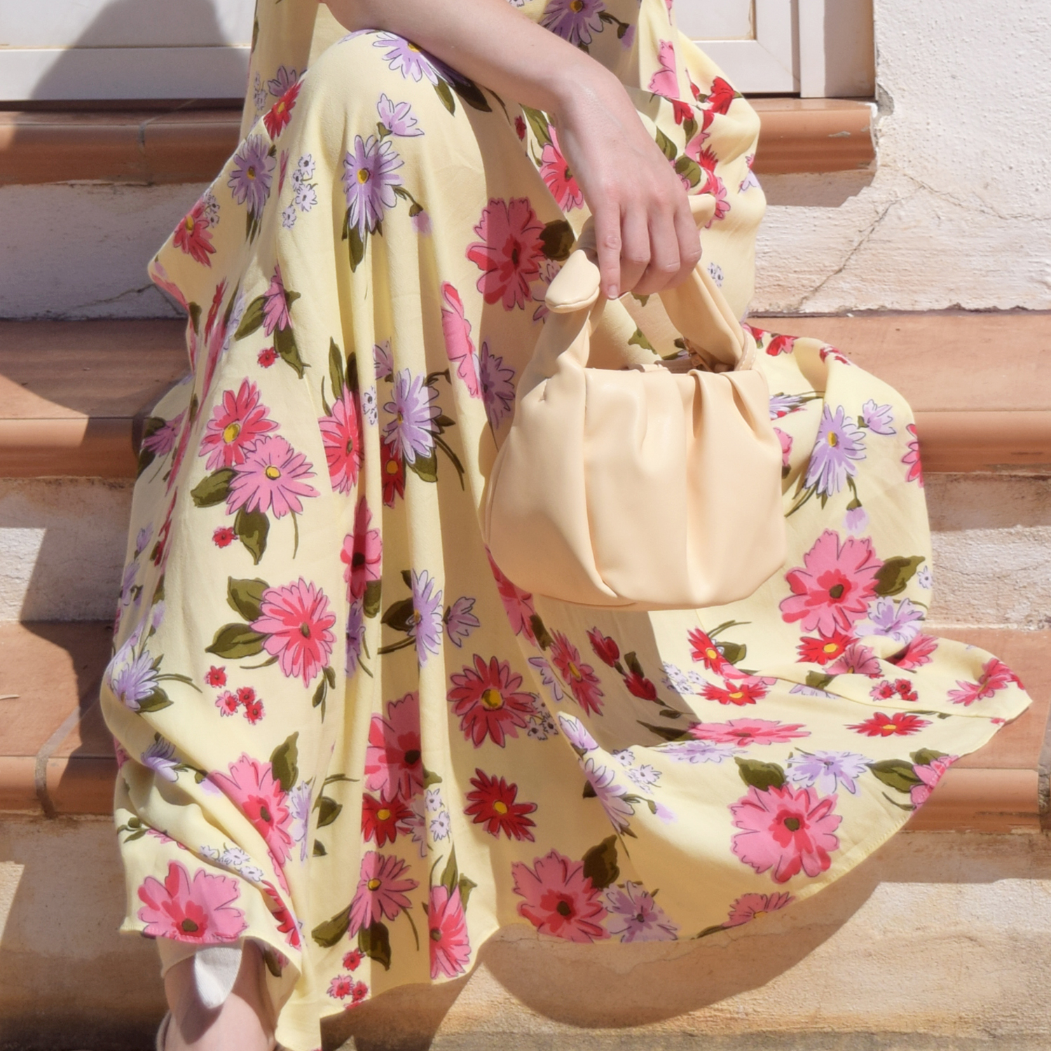 Bastan unas cuñas o sandalia plana y un bolsito pequeño (casi, casi del mismo color), me encantan los mini bolsos, aunque no sean prácticos para el día a día.