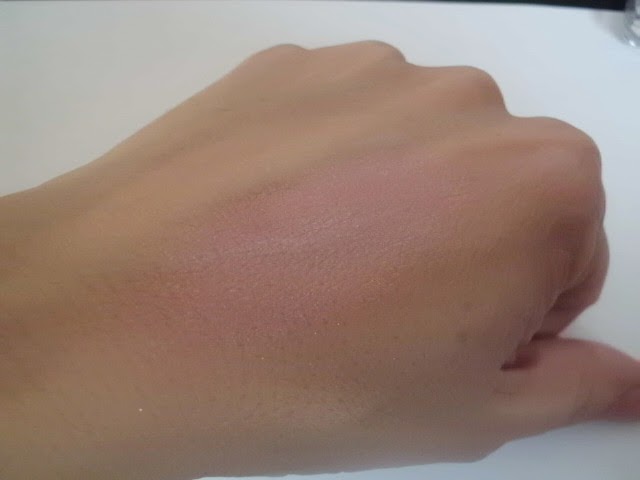 Es un polvo de color rosa muy clarito con unos destellitos plateados que aportan un brillo muy bonito,en mi caso el color que me deja es un rosa medio,un poquito mas oscuro de lo que se ve en mi mano.A la hora de aplicarlo deberemos tener cuidado ya que el color va subiendo poco a poco,es mejor aplicarlo ,esperar y repetir si hace falta,ya que es muy fácil pasarnos.