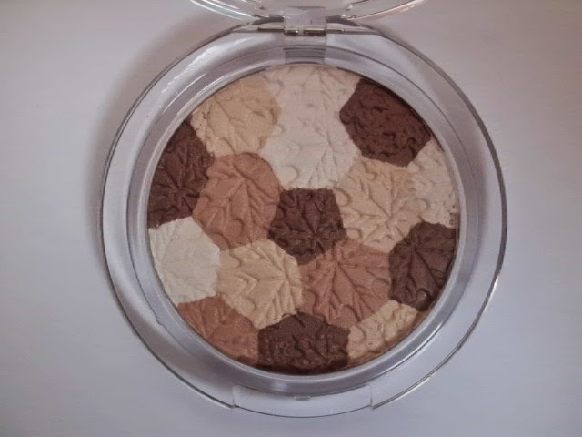 Multi Colour Powder,tiene un diseño precioso de hojas en relieve,de diferentes tonos,blanco,dorado,cobrizo y marrón,yo no lo utilizo como polvo ya que todos sus tonos tienen brillo,lo utilizo sobre todo como iluminador ya que da un tono dorado muy bonito y también como colorete utilizando más los tonos oscuros,no lo he probado como sombra pero creo que pueden servir perfectamente.Traen 10gr. y su precio es de 4,19.