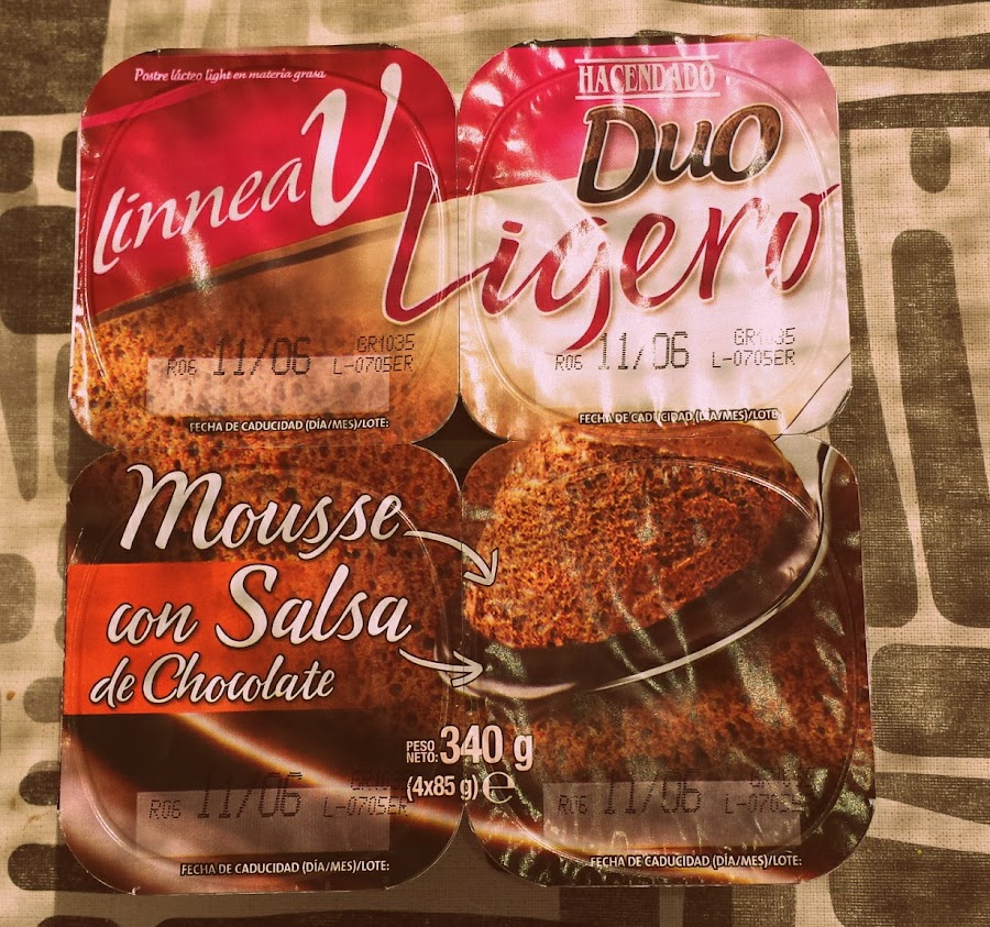 Algunos días las ganas de chocolate se apodera de mi y que mejor que un trocito de chocolate puro 85%, el que más me gusta es el de lind. Pero también suelo optar por estos mousses, también de Mercadona, que llevan pocas calorías y están deliciosos!!