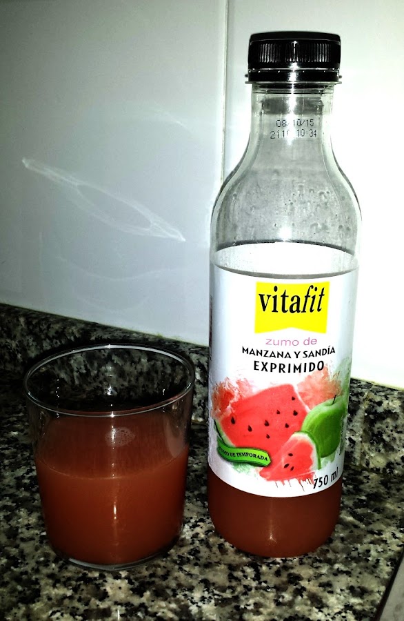 Después de 20 minutitos (una duchita rápida) ya estoy lista para el desayuno, como no me gusta ningún tipo de leche, suelo tomar una pieza de fruta, cereales...un zumo, como por ejemplo los zumos Lidl, naturales y riquísimos. Habéis probado este de sandia y manzana?