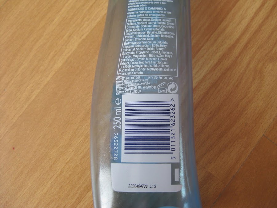 Para cabellos secos o dañados,huele muy bien a coco y el propio jabón tiene color azúl.