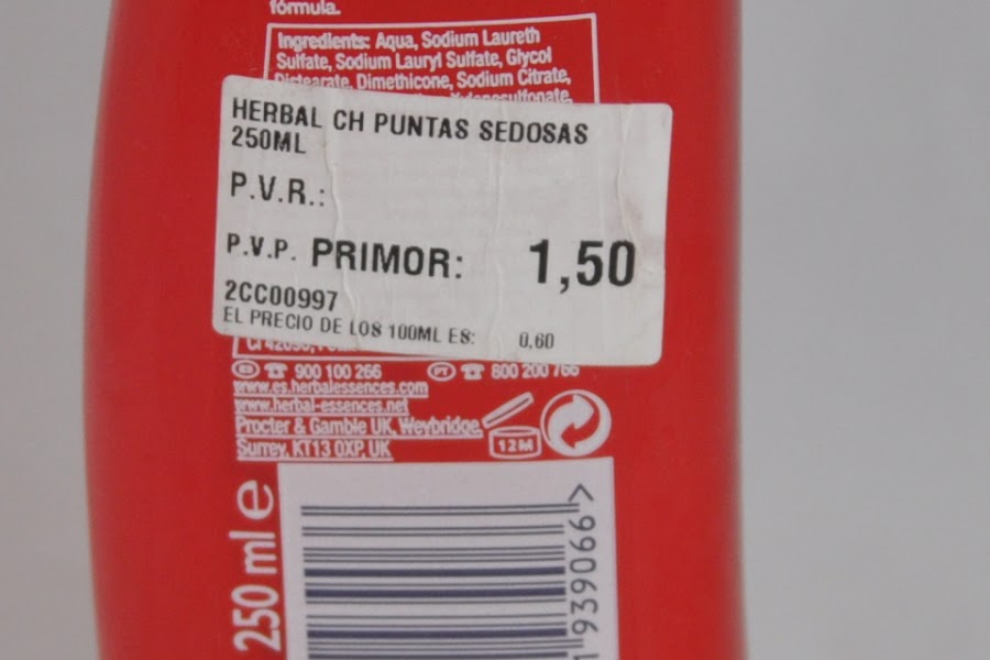 Champú protector para puntas abiertas de Herbal Essences, este producto me ha gustado mucho,no sé realmente hasta qué punto protege las puntas pero lo que sí notaba es que mi pelo estaba muy suave y ligeramente más suelto.A demás huele muy bien.
