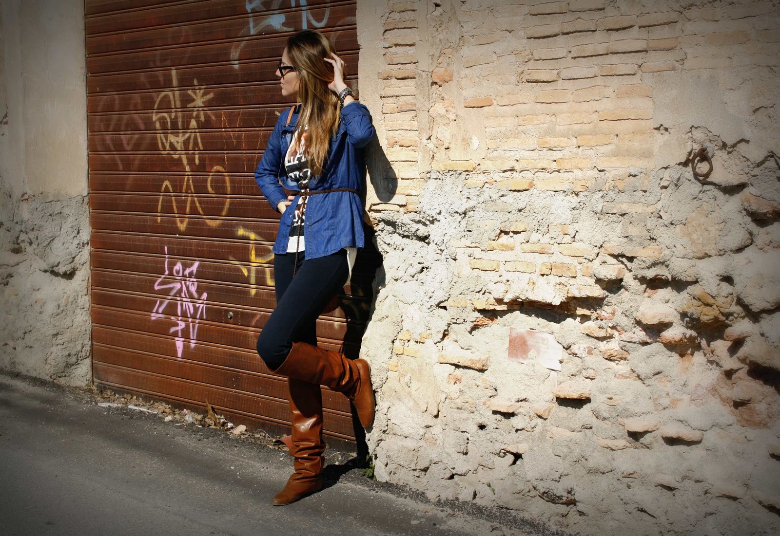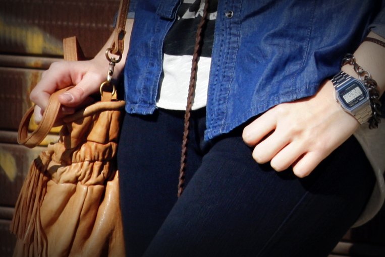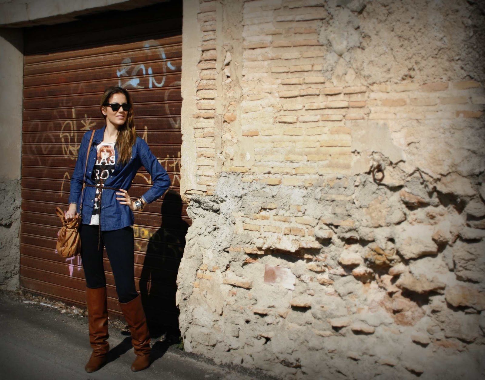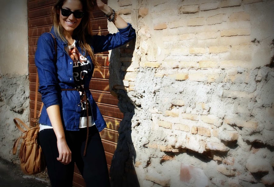 El look de vuelta es lo más básico y sencillo del mundo, es del sábado, que amaneció soleado y fuimos a comernos una hamburguesa en plan cómodo. La camisa es de zara y le estoy dando mucha caña, y el bolso es de rebajas, en cuanto lo vi, me dije, es mío!! ¿A que no sabéis cuándo lo llevaba? Pues aunque en la foto no aparece, lo llevaba aquí!!