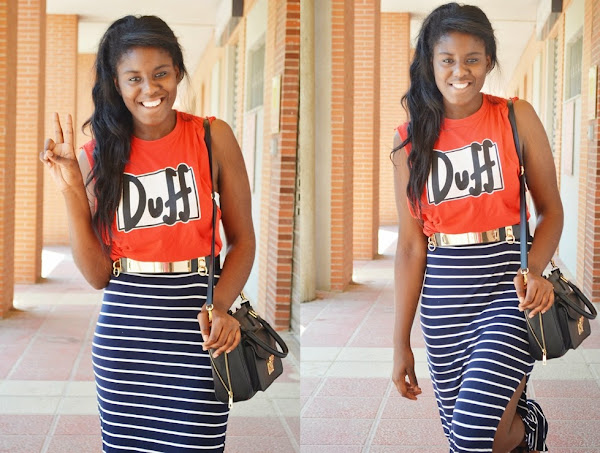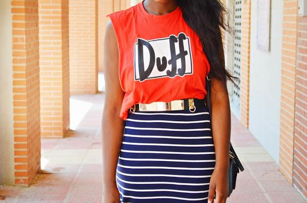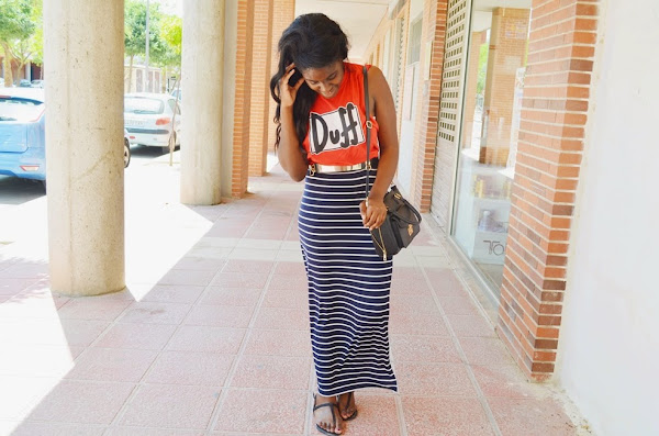 ( los que me seguís de tiempo ya habréis visto a los primos tan comestibles que tengo y los que no me seguís de mucho , alguna foto hay por instagram) y como siempre os iré enseñando fotos por mis redes sociales.En cuanto al outfit de hoy a mí la verdad me encanta, fue un día de pateo porque tuve que ir a la universidad a entregar un portafolios, ir a reservarme sitio en la biblioteca que luego se peta mazo, comer y demás. Falda larga con abertura que no puede ser más cómoda y puntazo con la camiseta de Duff que me regaló mi súper amiga Rosario (gracias sistaa , love yaa) o no? jiji