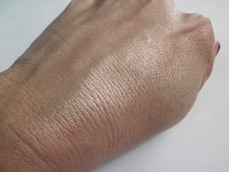 Es un iluminador en un tono melocotón-dorado que da una luz muy bonita a la piel sin llevar ningún tipo de destello ni purpurina,es bastante cremoso y se fija muy bien a la piel,el día de nochebuena lo lleve puesto y me aguanto perfectamente toda la noche.