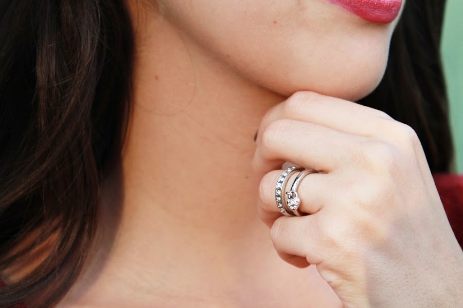 Para completar no podía faltar mi sombrero (si, lo se he utilizado demasiados sombreros últimamente), lentes tipo Dior que son de mis favoritos y a un mega precio AQUÍ, zapatos y bolso negro básicos y mis nuevos hermosos anillos regalo de aniversario de Joshe ¿No son demasiado preciosos?