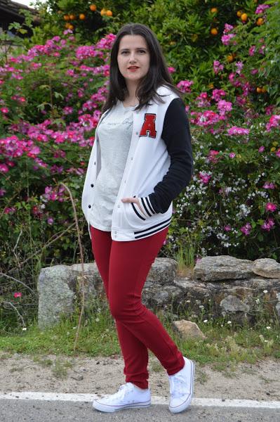 Le he querido dar un toque universitario, con esta chaqueta que la tengo desde hace muchos años y me encanta.