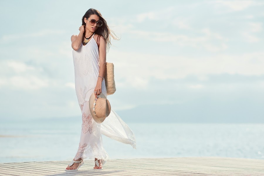 Para estrenar estación os dejo con un look muy veraniego con un vestido blanco de aire ibicenco de SHEIN. ¡No puede quedar mejor junto mis sandalias LOLA BLUE!