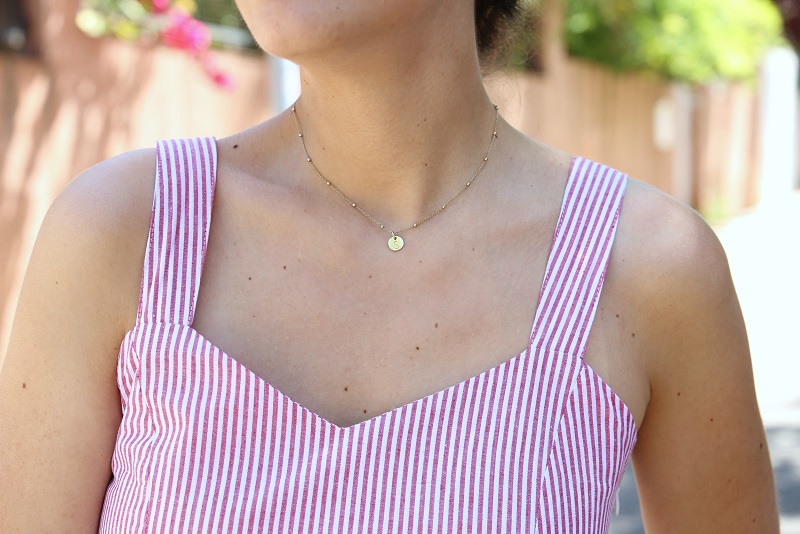 Creo que le voy a sacar mucho partido. Para diario lo combiné con sandalias planas y maxi bolso que me regaló el año pasado Susana, y por supuesto joyitas minimalistas como la medalla con mi inicial y pendientes de aros, ambos de Dorado Vintage.