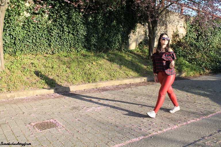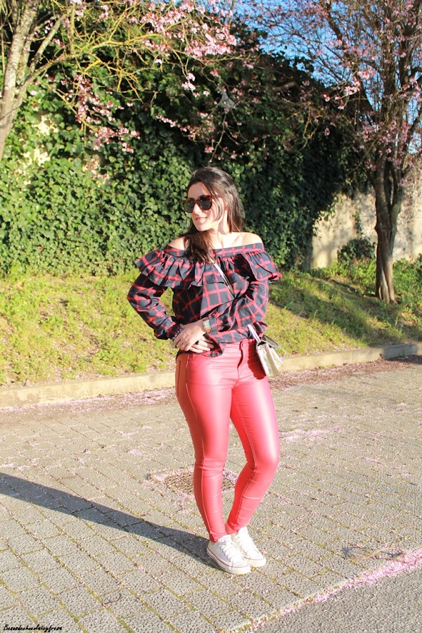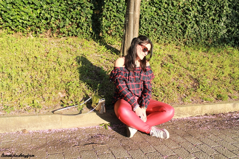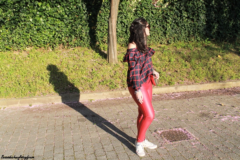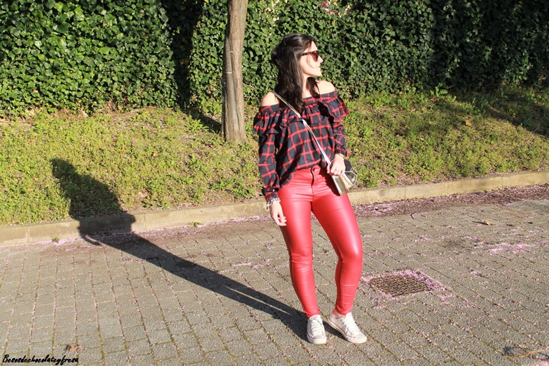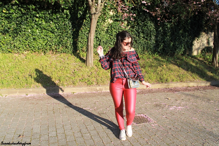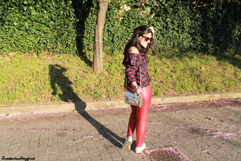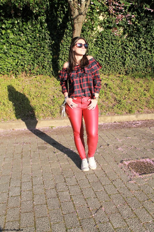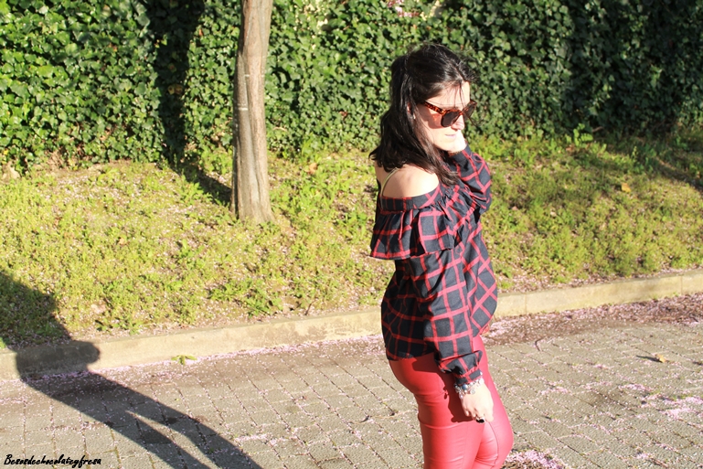 Me encanta la tendencia off the shoulder, me parece sexy y elegante al dejar al descubierto uno o los dos hombros. Esta blusa es de una nueva firma con la que colaboro, concretamente Yoshop, que tiene infinidad de productos a cada cual mejor. Se trata de una blusa en tonos azules y rojos de cuadros con volantes en la parte superior y manga larga para aprovechar aún los días de fresquillo.