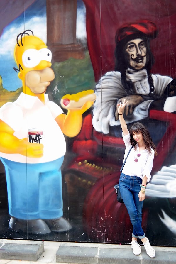 Estoy nerviosa, agobiada y emocionada con cada día que pasa. Cada vez queda menos para la exposición de mi TFG y aunque lo llevo todo perfecto, cada vez me da más miedo. Sé que soy pesada con el tema pero es mi día a día ahora mismo. ¡Cuando terminé lo celebraré a lo grande! Además, ya tengo en mi casa el vestido, los zapatos y el bolso de mi graduación que el sábado que viene. ¡Tengo unas ganas impresionantes! Ya os lo enseñaré, por supuesto... Además, ese mismo día por instagram ya lo podréis ver seguro. De momento hoy os dejo estás fotos que me hice con Homer Simpson, ya ves... Aún hay rincones de Murcia que no me los conozco y el otro día que fui a pasar el día con mi hermana pequeña descubrimos ese mural que nos encantó y aprovechamos para hacer un par de fotos allí. Me gustaron mucho como quedaron y más con esas gafas de sol nuevas que me tienen enamorada, ya sabéis que soy una fanática de las gafas de sol. Espero que os gusten las fotos tanto como a mi. ¡Feliz Viernes!