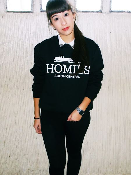 Estoy actualizando bastante tarde pero tampoco he tenido tiempo antes y quería enseñaros este oufit con una sudadera nueva que me llegó la semana pasada, puede que muchas la conozcais, ya que su logo (Homiés south central) es muy conocido. La pedí por instagram en una cuenta de una pequeña empresa y en una semana y media me llegó en buenas condiciones y con buen resultado. (abajo os dejo la cuenta por si os interesa)