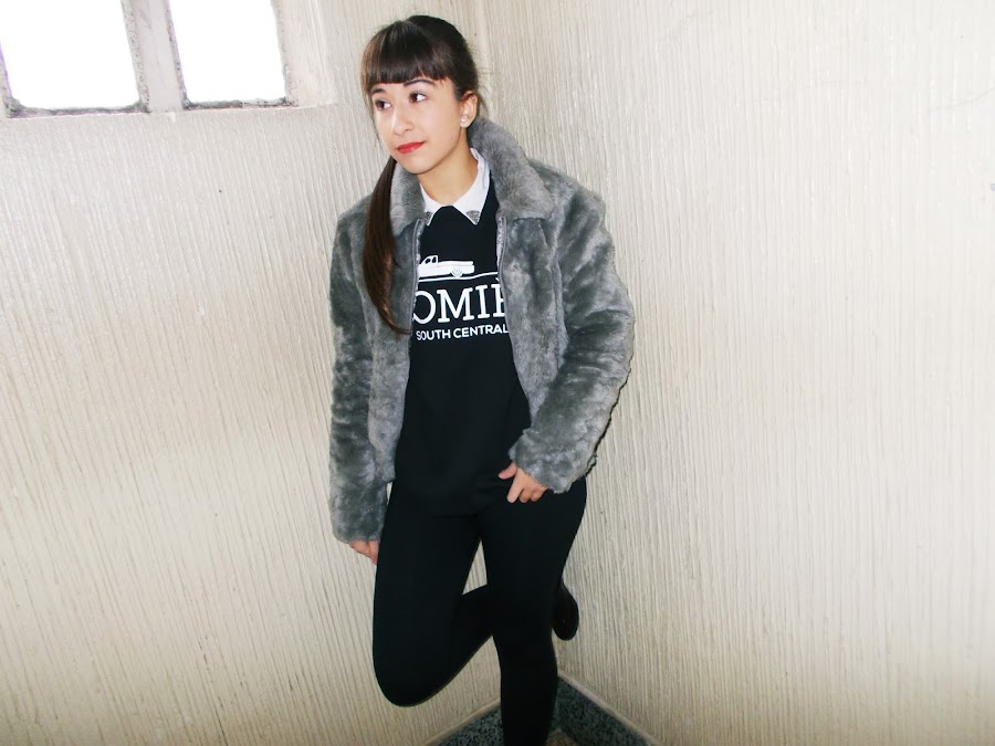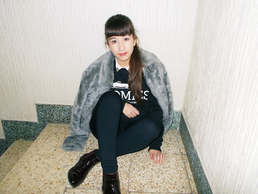 En cuanto al outfit, me enamoré de la sudadera y para darle un toque diferente me puse una camisa debajo para que se viera su cuello, el resto son 2 de mis prendas favoritas para este tiempo, el abrigo de pelo (sintético) y mis botines granates. Y una buena coleta alta para marcar la diferencia.