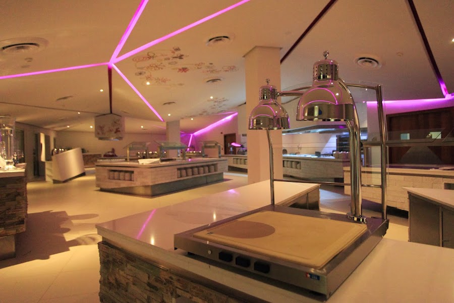 Las luces del Buffet Spoon simulan triángulos delimitando la estancia y creando un ambiente único.
