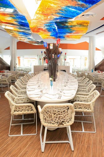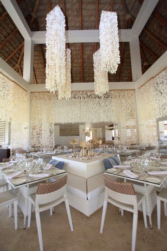 Entre los diferentes restaurantes, me llama la atención el espectacular Restaurante Sofrito, con esa cortina formada a partir de conchas de mar y pequeñas esculturas de madera, aportando calidez.