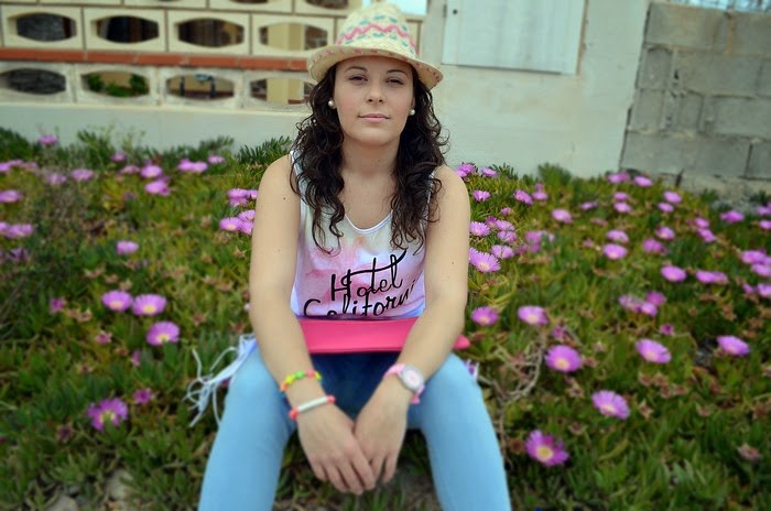 Camiseta flecos: Primark / Jeans: Primark / Zapatillas: Primark / Bolso: Primark (Old) / Sombrero: Blanco