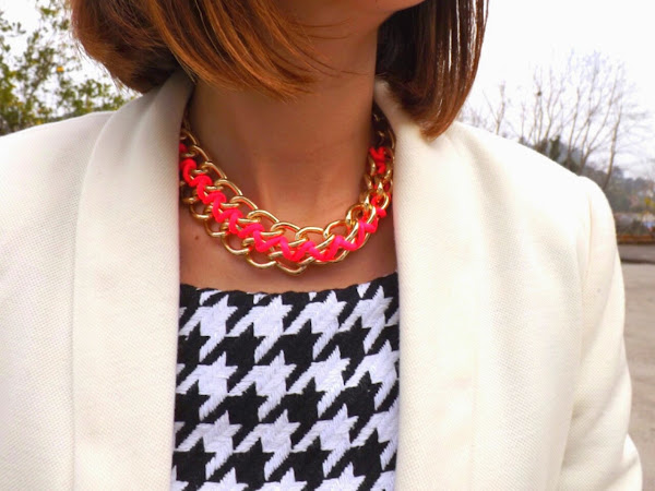 Para darle color, le añadí los complementos en fucsia. El collar es de Creaciones Adma, no dejéis de visitar su página porque esta chica es una artista y tiene cosas preciosas.
