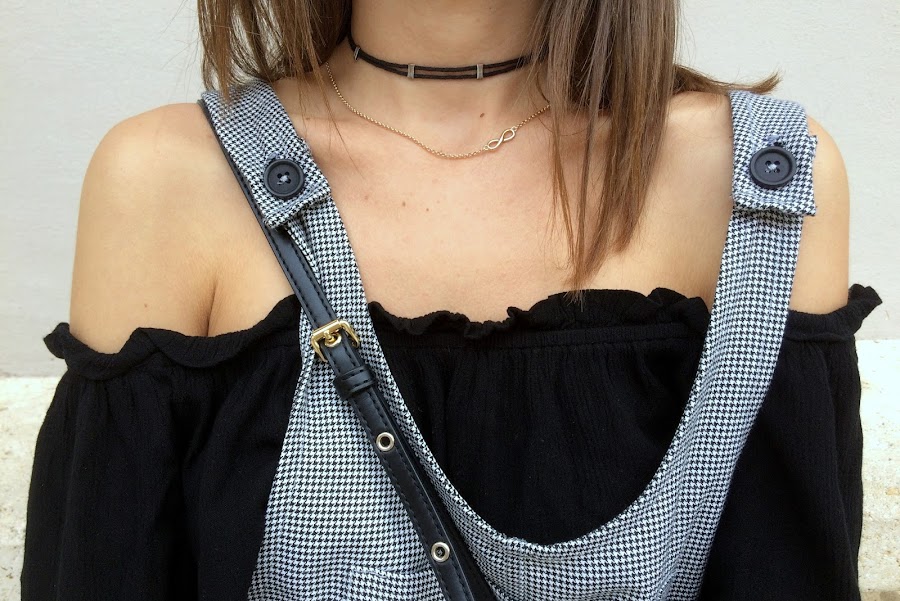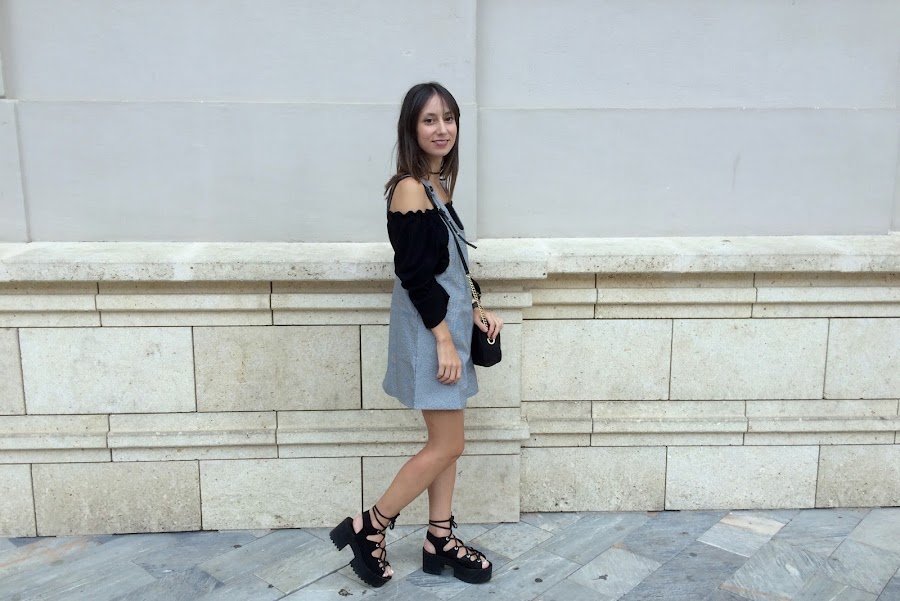 Ya las fotos que estoy haciendo estos días son completamente diferentes y ya os los enseñaré por aquí, pero hoy toca este look con ese pichi con estampado de pata de gallo que me encanta. Estoy deseando volver a ponérmelo y enseñároslo en plan más abrigado y mas para este tiempo.