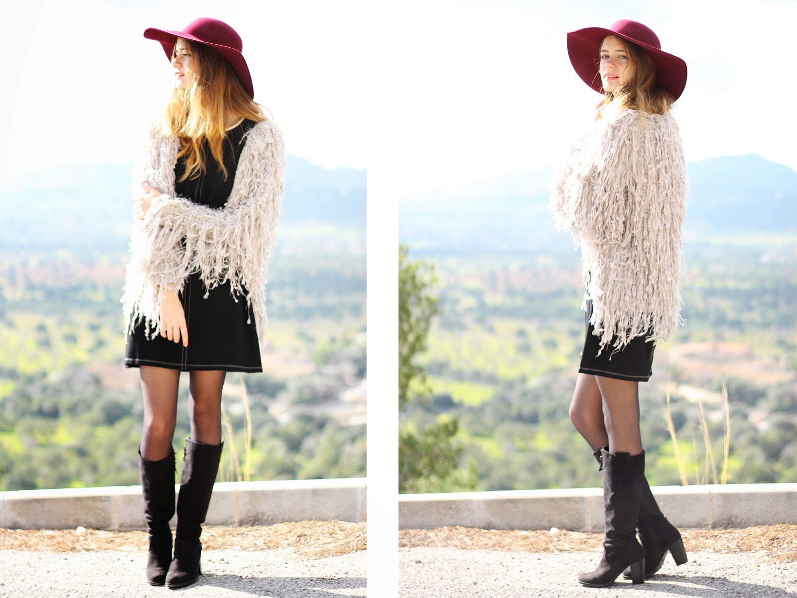 Hoy os enseño dos outfit de como combinaría yo un sombrero de color burdeos. En los dos outfits llevo alguna prenda de color negre porque me parece un básico y me encanta el contraste con el sombrero. ¿Cuál es vuestro favorito?