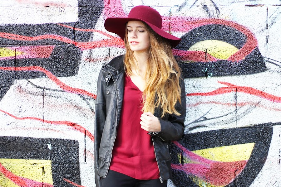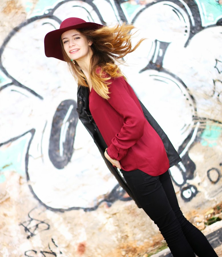Today I show two ways to wear a burgundy hat. In both outfit I wear some black garments because I belive they are basic and I love the contrast with the hat. What"s your favourite?
