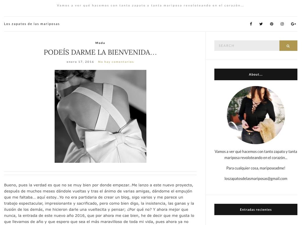 Me siento orgullosa de esta pequeña locura, en este año conseguí mi propio dominio, mi .COM que a mí me hace especial ilusión porque ya se que Los Zapatos de las Mariposas es mí pequeño tesoro, orgullosa del logo, que mi gran colega David creó en lo que yo me tomaba un café con él y no me puede gustar más!