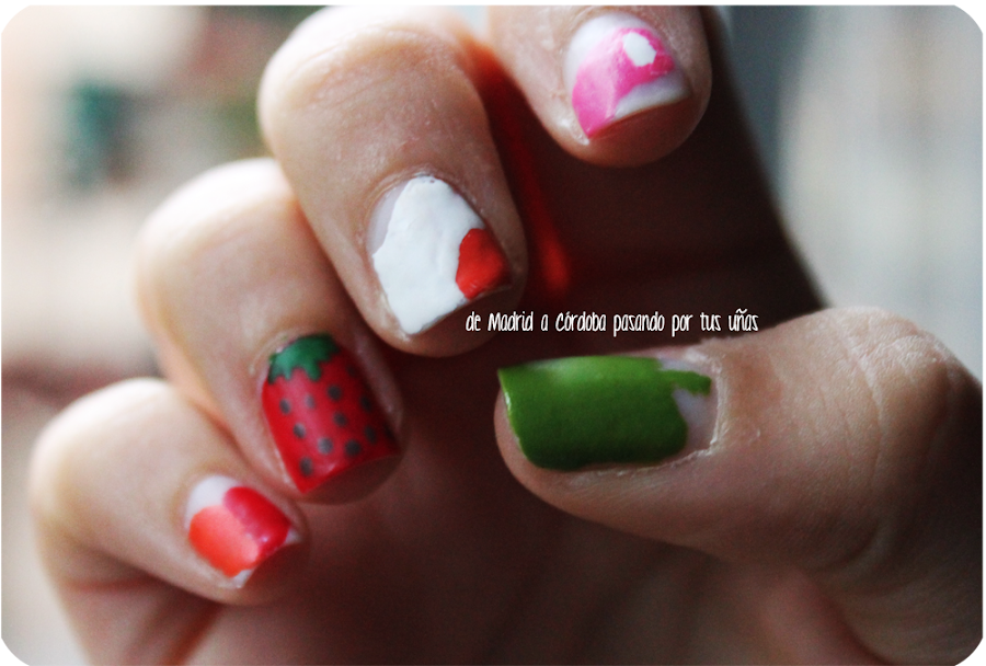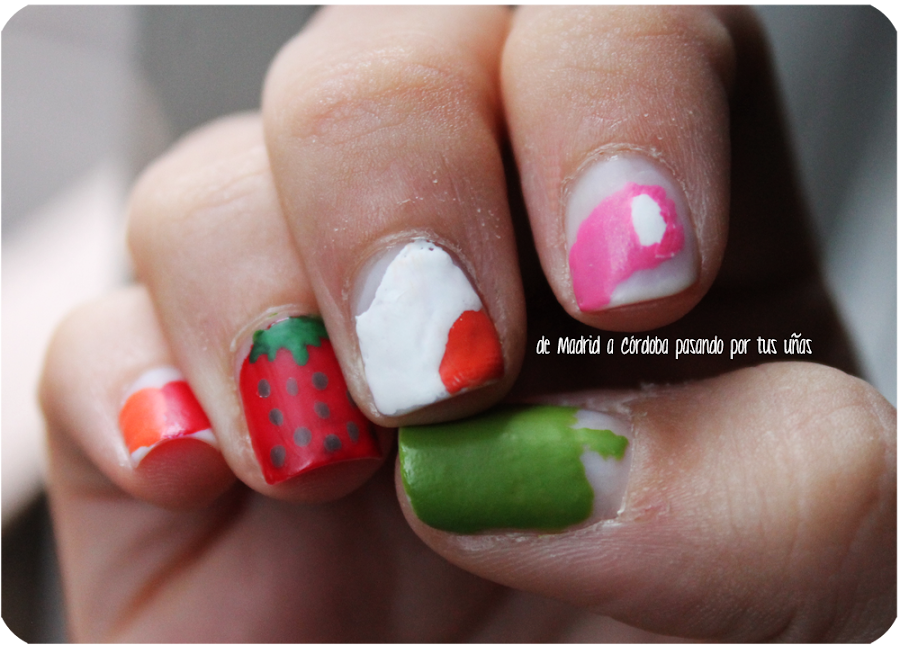 Con lo cual, ya sabéis qué es lo de las uñas, ¡CHUCHES! <3 un corazoncito naranja y rojo, una fresita, huevo, nube y manzanita de azucar, es todo super cuqui, ¿a que es bien mona?