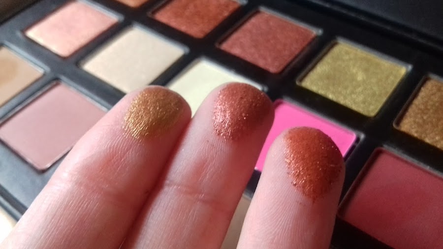 At only 12,49$, you cant beat it. The matte shadows arent creamy at all, you have to build them up to get the color payoff that you want, nothing too noticeable, but the color selection is great. The textured shadows take some work, but I dont mind applying them with my finger. Definitely more for people like me that arent about spending that 65$ or beginners. If beauty on a budget is your thing, you need to add this kit to your collection, ASAP! The palette is almost "identical" to the Huda Beautys one. Ipad pics, sorry. Please click in the images for more info.