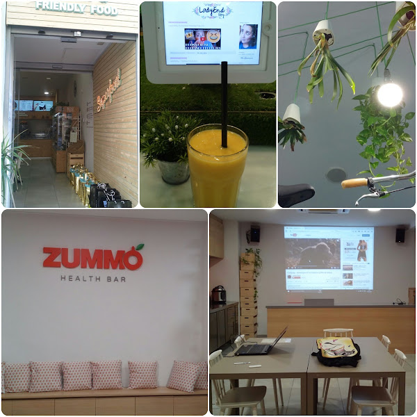 El evento se realizó en Zumm Salads, el primer restaurante "Healt Restaurant" de España. Tienen gran variedad de productos (zumos, ensaladas, sándwiches, dulces naturales...), comida muy sana y sostenible. El local es precioso, incluso tienen unos cuantos iPads para poder desayunar y navegar a la vez.