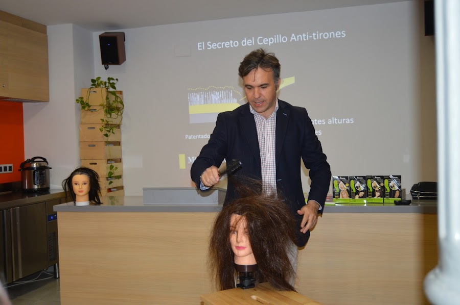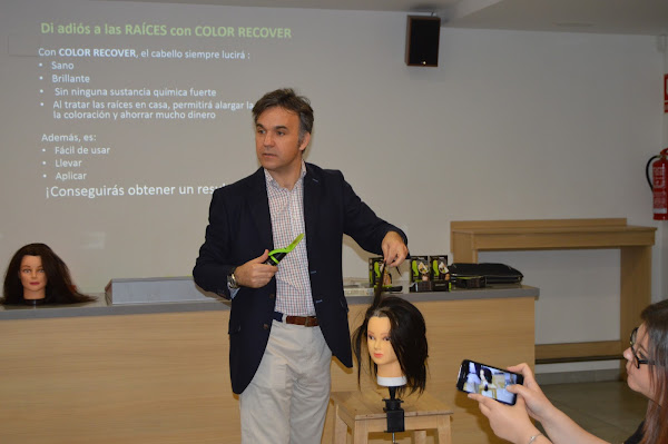 La primera marca que asistió para hacernos una presentación fue Free Farma. Nos hablaron de dos productos: en primer lugar de un cepillo anti tirones, el cual me está gustando muchísimo. Nos hizo una demostración con un maniquí al que se le enredó el pelo y con un cepillo normal había que cepillarlo pegando tirones y con este cepillo pasaba como si el pelo no estuviera enredado, es una pasada. Luego nos presentaron el Color Recover, un tinte instantáneo para cubrir las canas, el cual al lavarse el pelo desaparece, digamos que es para alguna urgencia si no te ha dado a tintarte las raíces.
