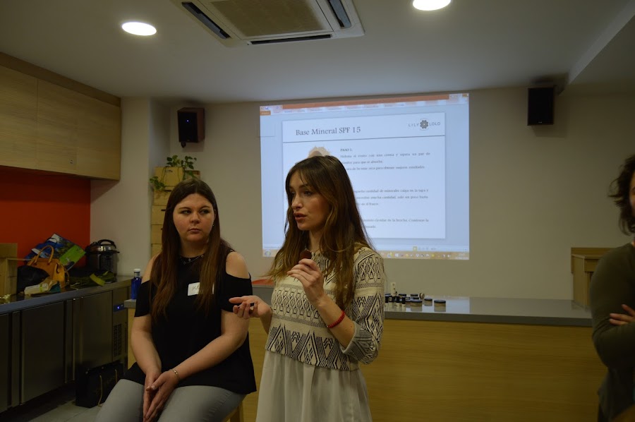 La siguiente marca que tuvimos el placer de conocer fue Krous, una empresa de cosmética natural que reúne varias marcas. La que nos trajeron para que la conociéramos fue Lily Lolo, que es una marca de maquillaje natural , y la maquilladora Sandra nos hizo una demostración maquillando a una de nosotras. Me sorprendí mucho al ver que un maquillaje en polvo mineral pudiera cubrir tanto como una base liquida, lo tapaba todo completamente y quedaba un aspecto muy natural.