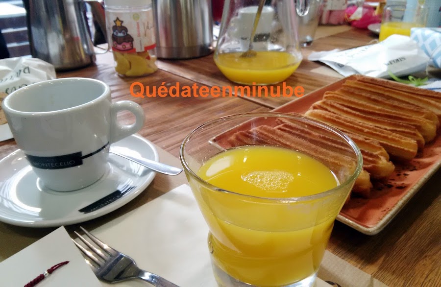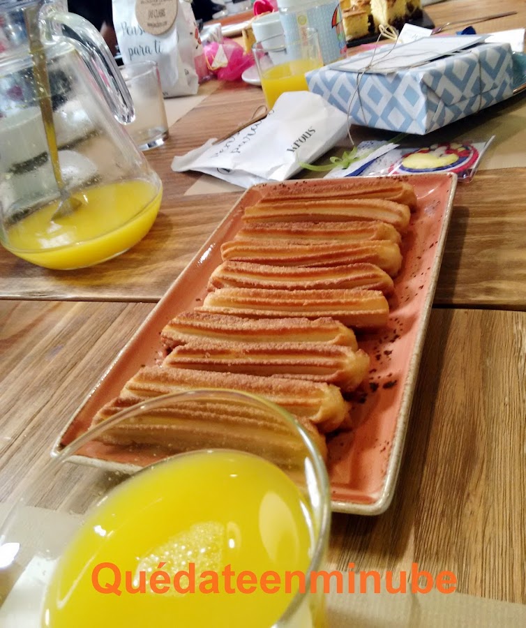 Y así, mientras tomaba mi zumo de naranja natural acompañado de churros y bizcocho tan ricamente tomábamos nota de los artículos de las empresas patrocinadoras.