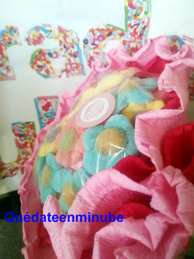 Y mirad también que detalle tan original nos regalaron, un ramo de gominolas, mmm...¡qué rico!
