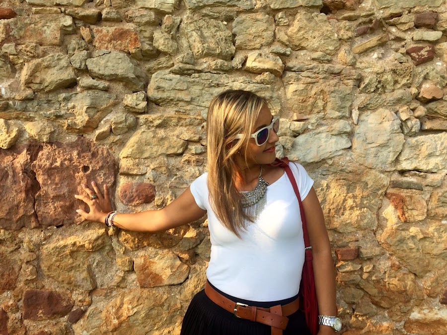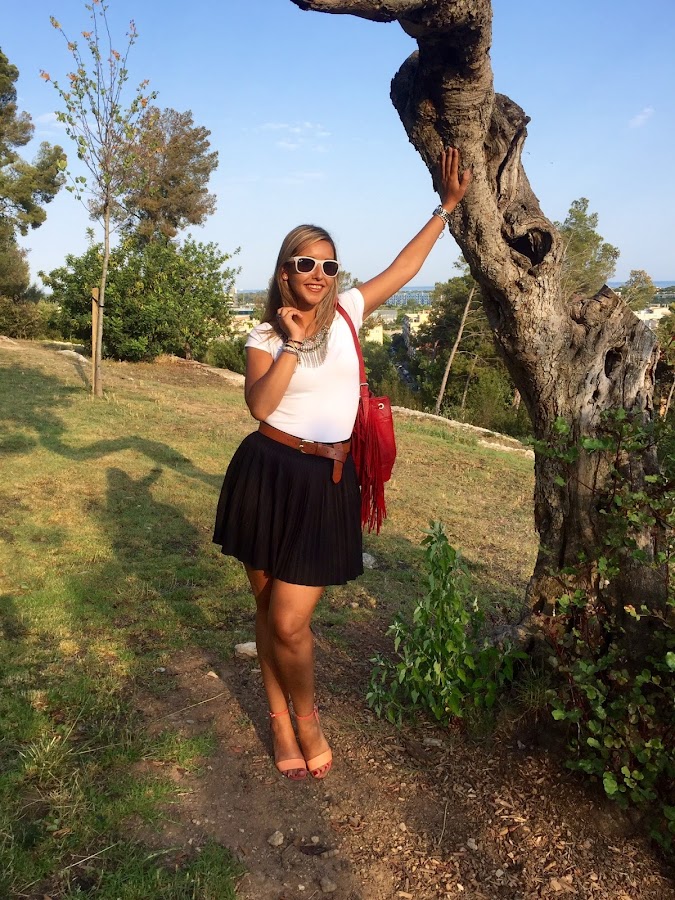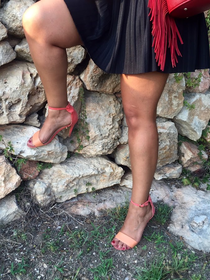 In outfits with basic clothes, the accessories are very important, because they give the touch to make it perfect. In this outfit, I put my coral sandals, my red bag with fringes and my ethnic necklace.