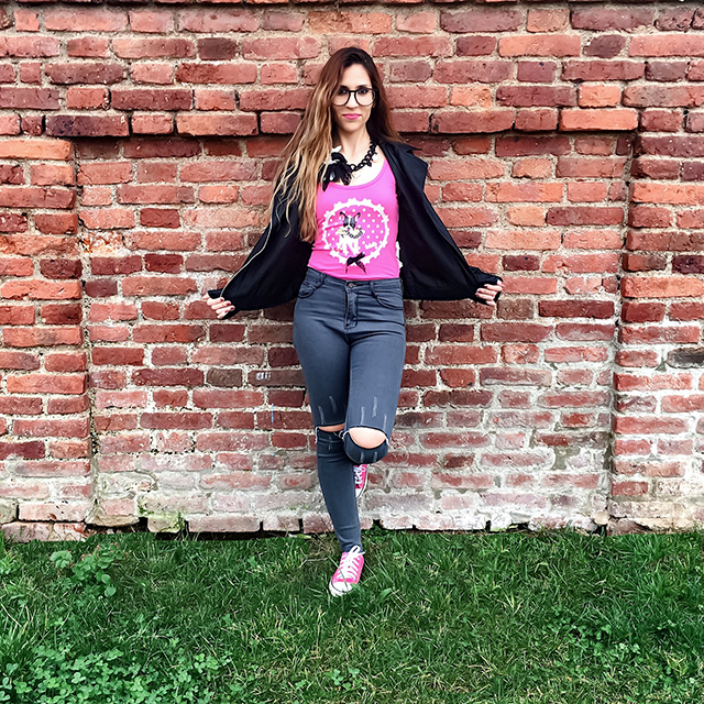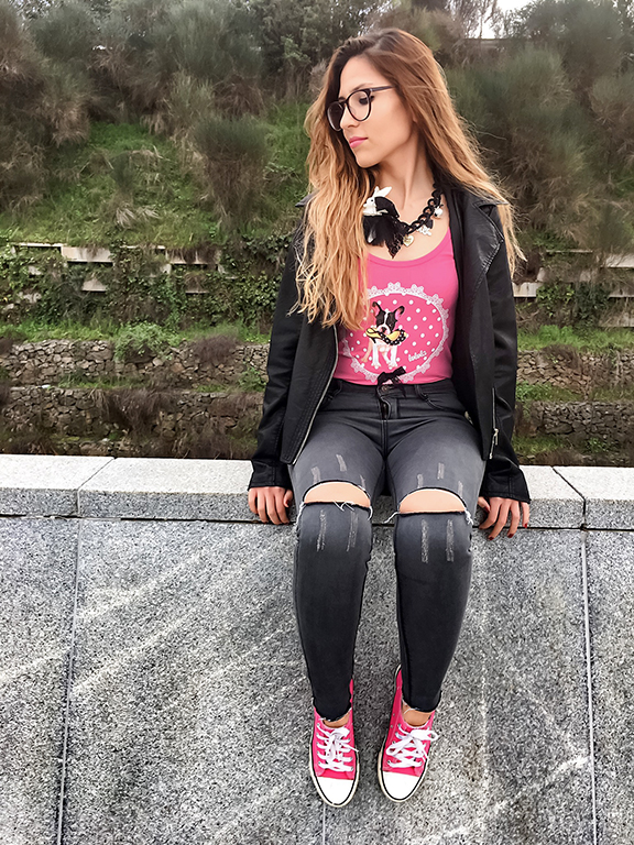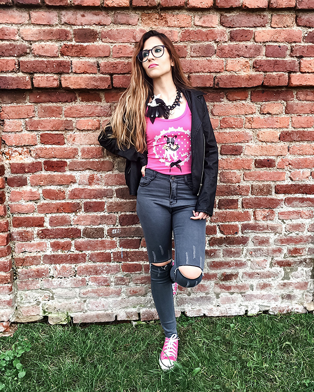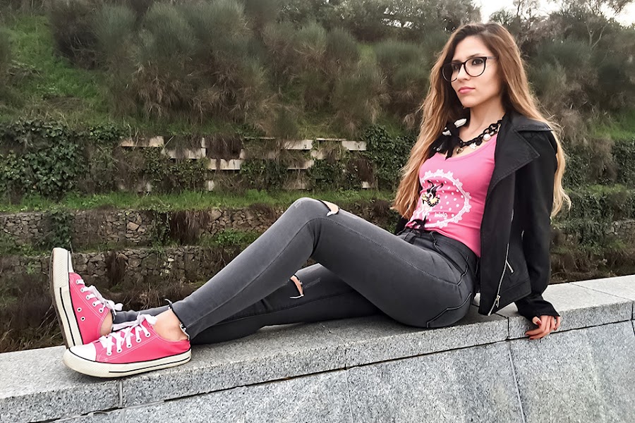 La he combinado con mis ripped jeans grises, mi biker negra y unas sneakers, que como sabéis, me encantan!