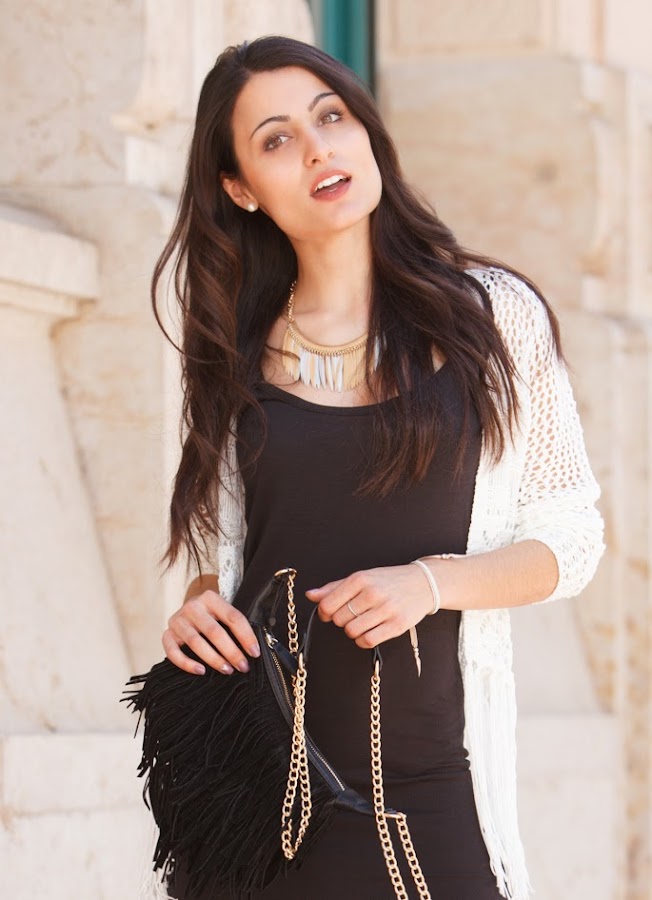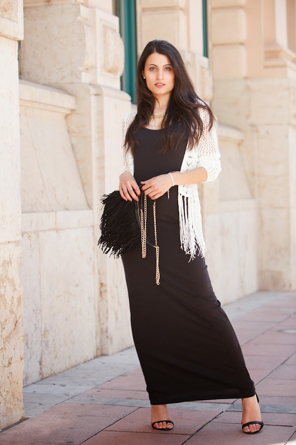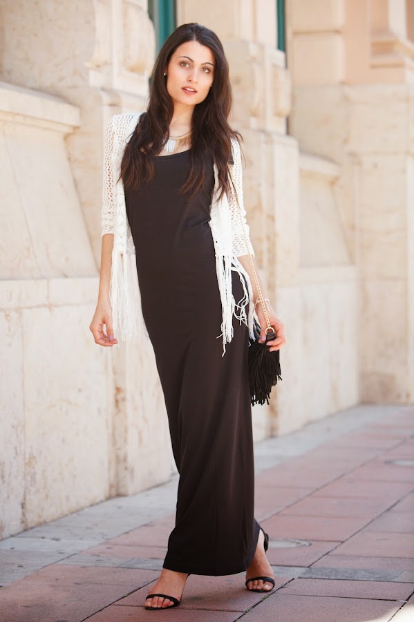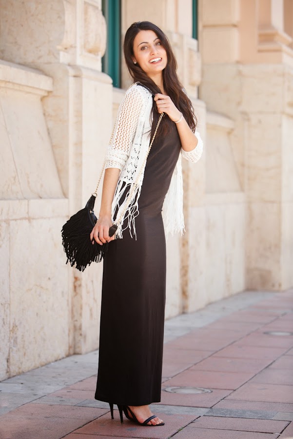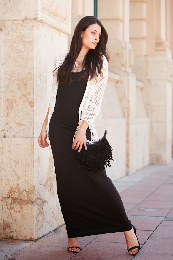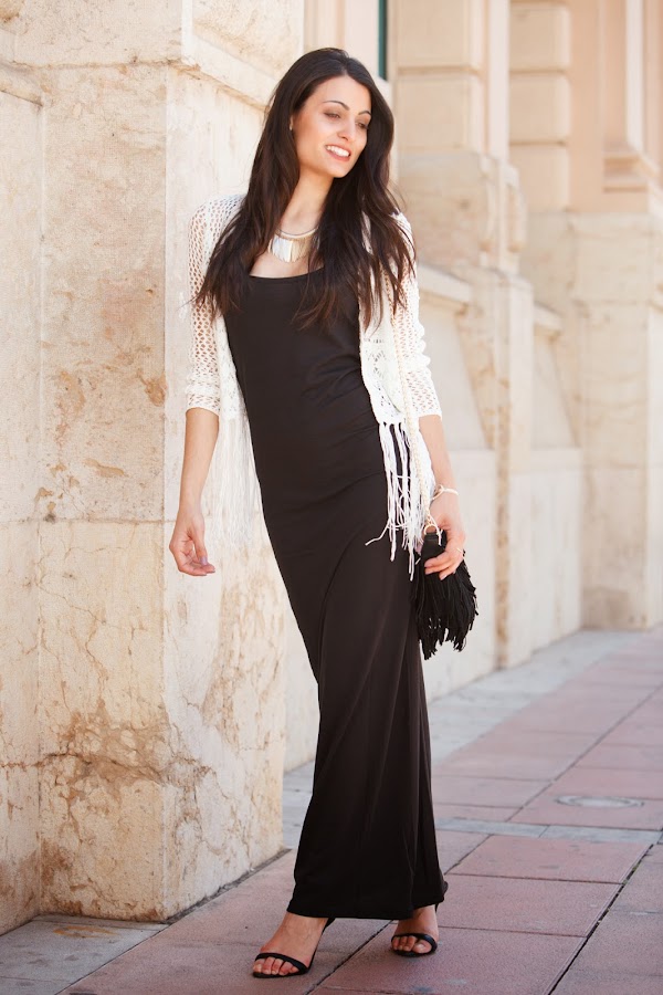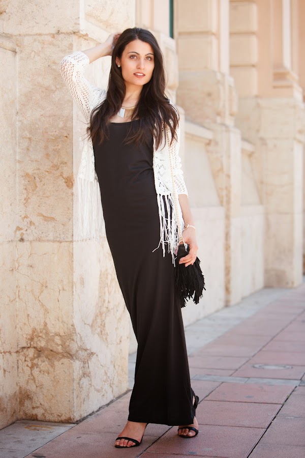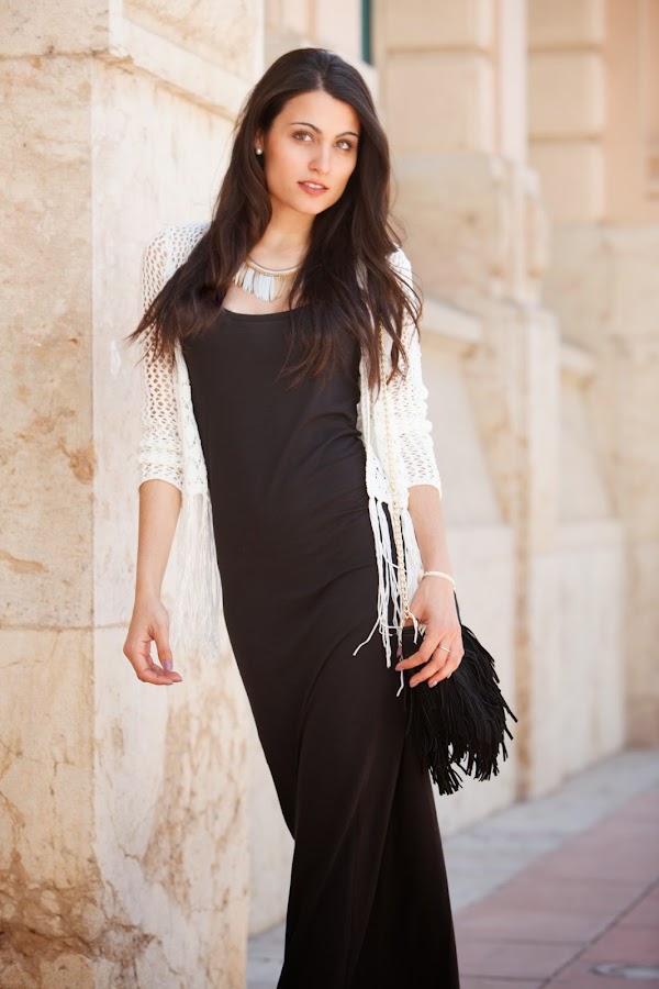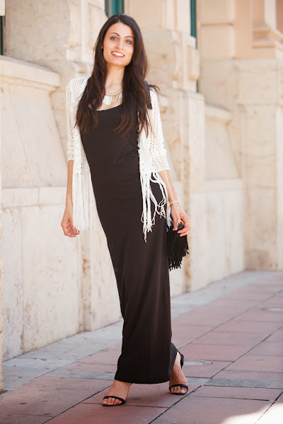 Y buenoooo... ¡Adoro la PRIMAVERA!¡Tenía tantas ganas de que empezase a hacer buen tiempo! Os dejo un look con un maxi vestido negro de ONLY que esta super bien de precio (new collection 12,95??? MORA Botigues). Lo he combinado con una preciosa chaquetita de punto también de ONLY, sandalias de MANGO (old) y collar/bolso de PIECES (new). Espero que os guste tanto como a mi el look de hoy!