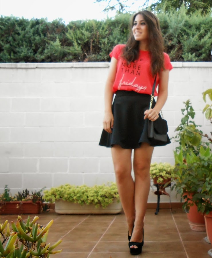Today, I show you my new T-shirt from Stradivarius. I felt in love when I saw it! The message is so lovely. I combined it with black complements and neoprene skirt. What do you think?