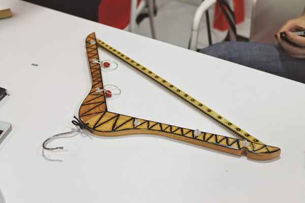 Para finalzar el día, Rosa de "My red lips elystrei" nos impartió un taller de customización de una percha para colgar nuestras joyas. Entre todas escogimos una ganadora, Patty Gruart.