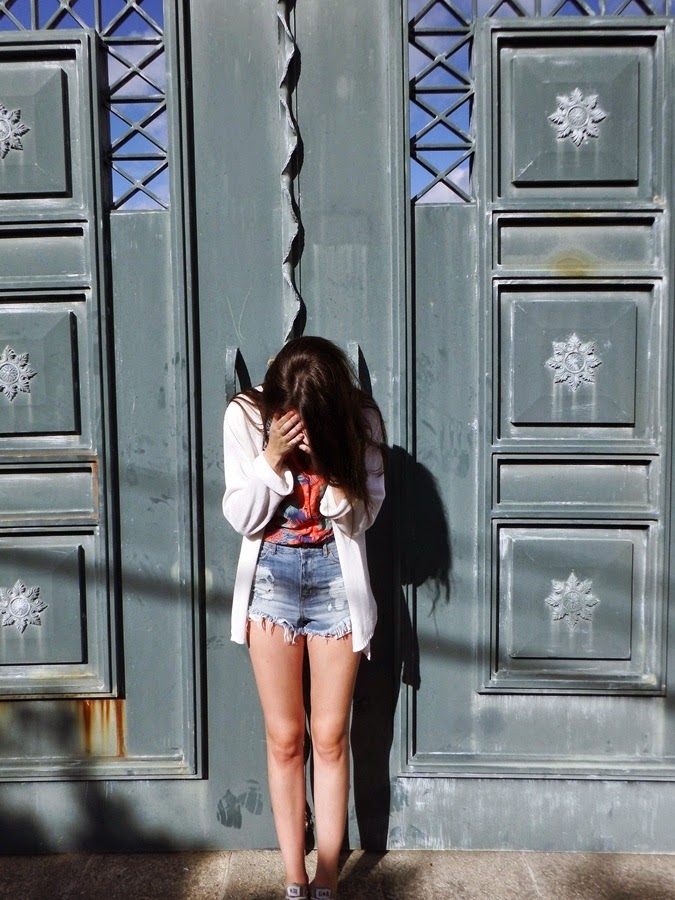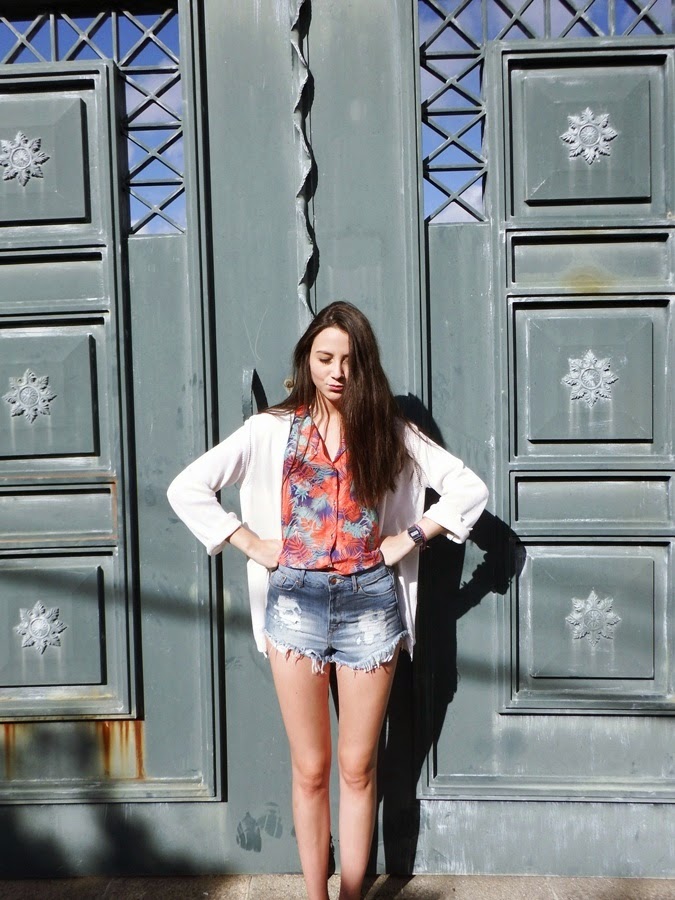 El outfit es algo sencillo aunque un poco especial gracias a la maxi chaqueta blanca rescatada del fondo del armario de mi madre. Y si, en pleno verano y con chaqueta, this is Galicia.