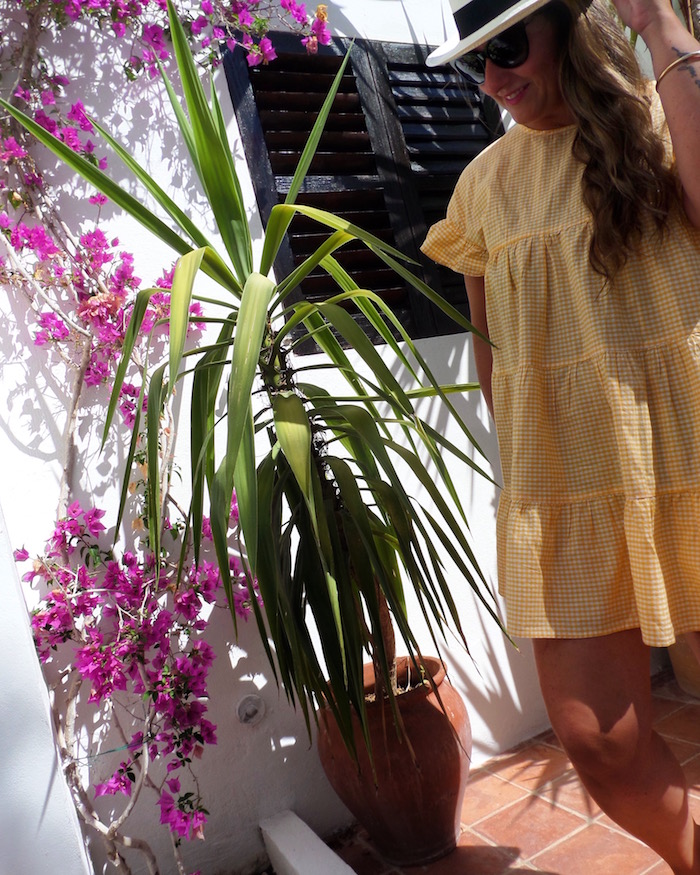 El look del primer día no dudé que sería con mi nuevo vestido de Zara con estampado vichy en color amarillo que me enamoró desde el minuto uno que lo vi on line. Cómodo, súper femenino e ideal tanto para ir a dar un paseo a Dalt Vila como para ir a tomar el sol a una cala de ensueño.