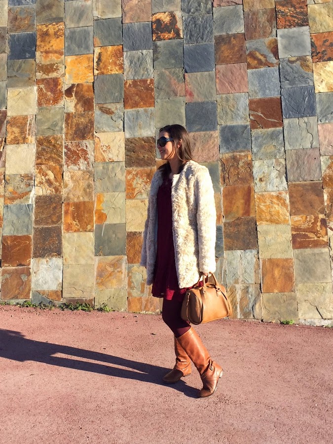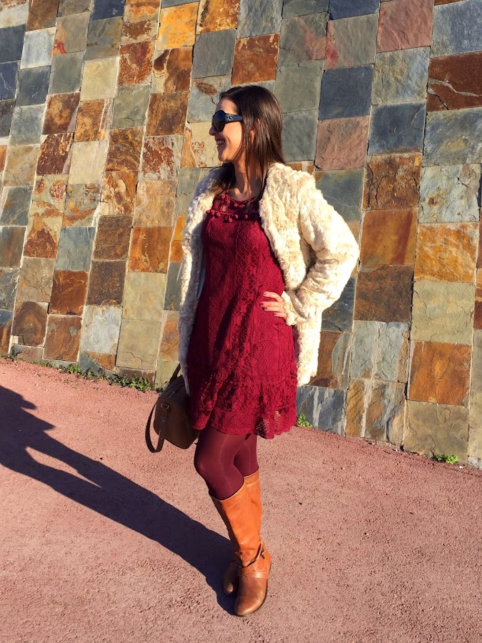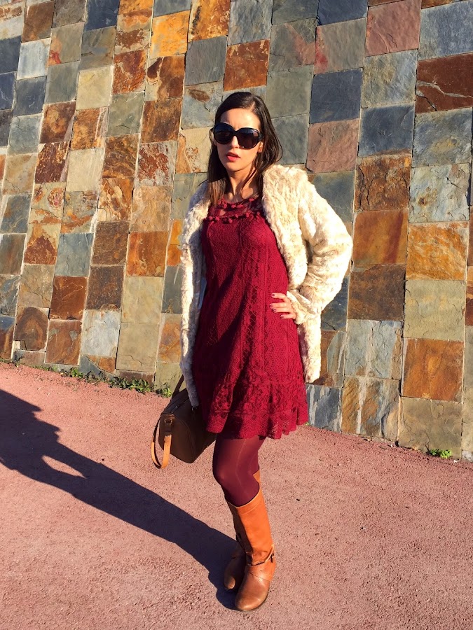 Good night babies! We are one step to the weekend and I"m waiting with anxious, because I "ll have a dinner that I have been waiting lot of time. I haven"t showed us this coat yet that I bought in the Black Friday. In the outfit of the day, I wore it with a burgundy boho dress and my brown boots. A perfect outfit to wear at the weekend.