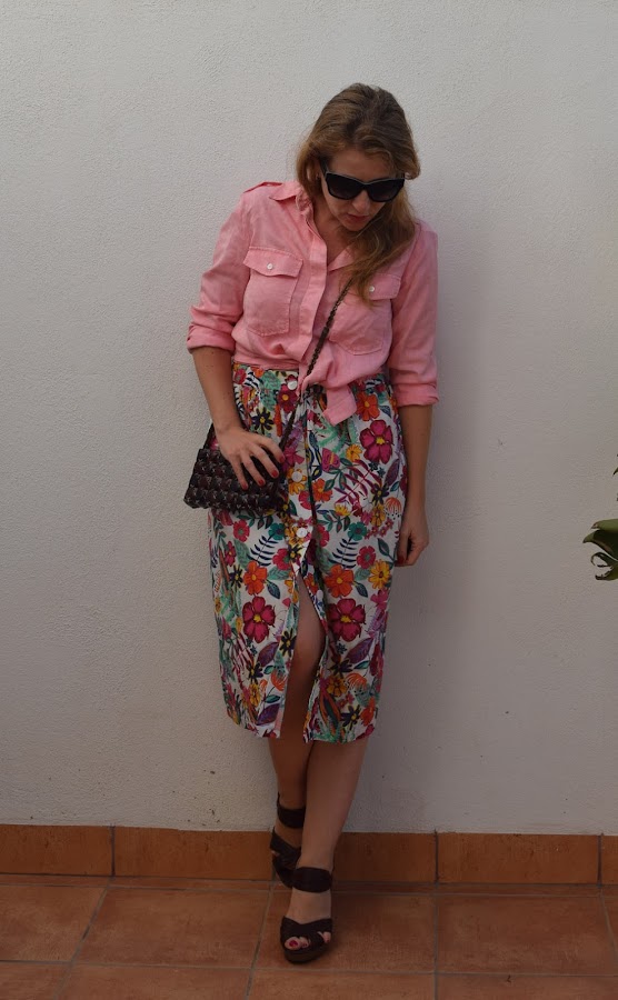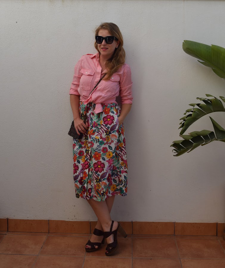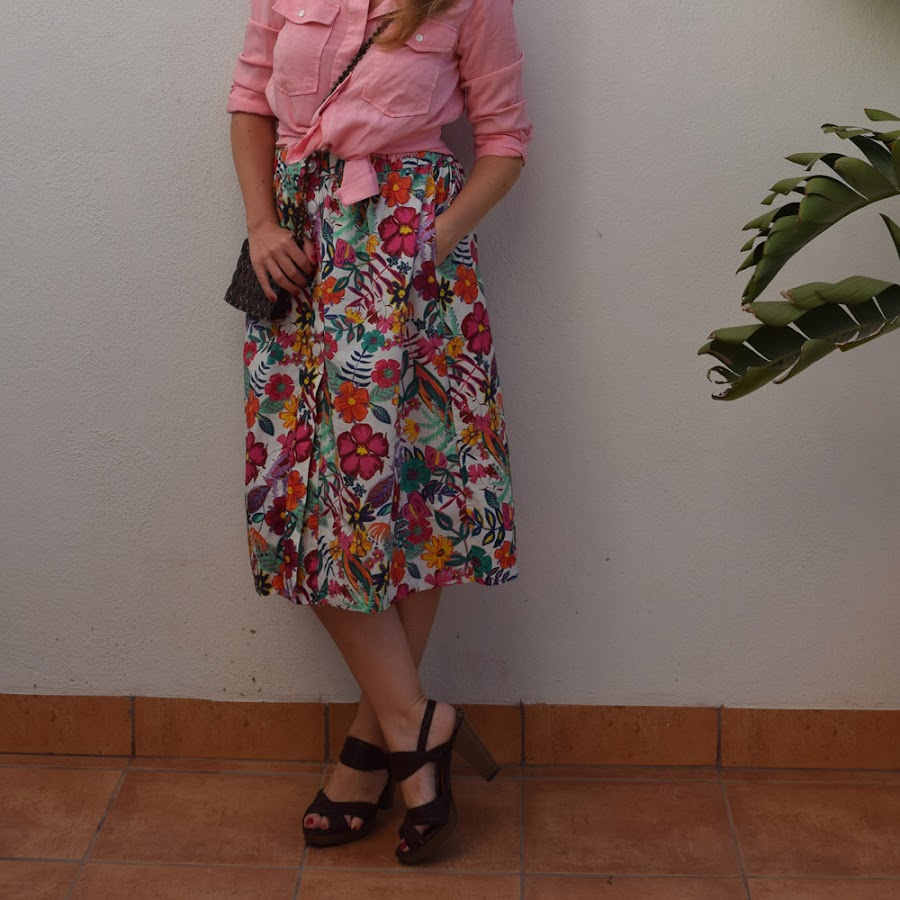 Mi adoración al rosa no tiene límitesEsta camisa me parece el toque que necesita la falda de flores. Además me encanta su tejido medio que me va a venir muy bien de cara al otoño.