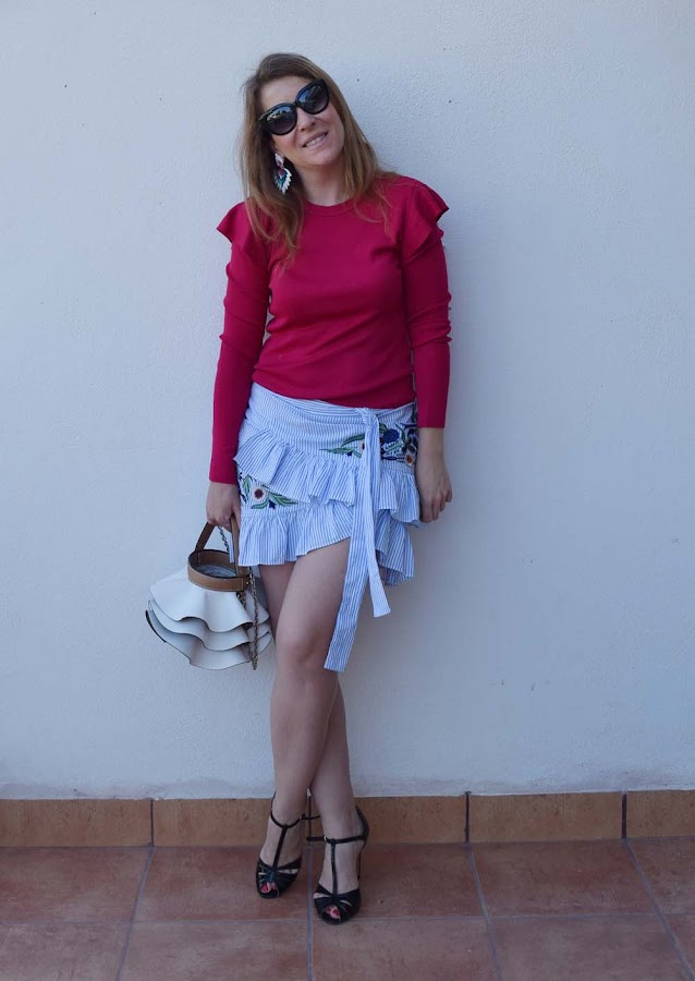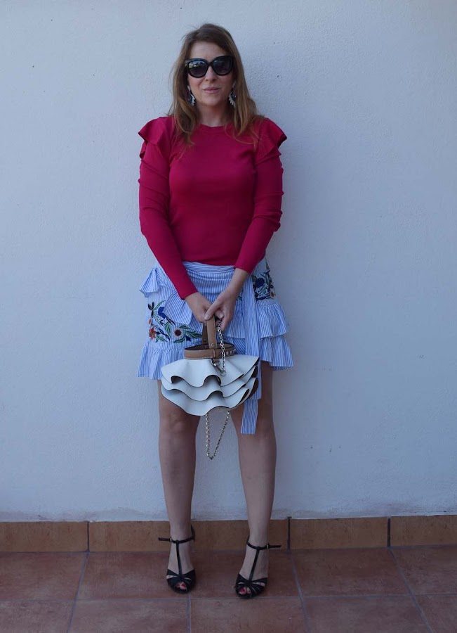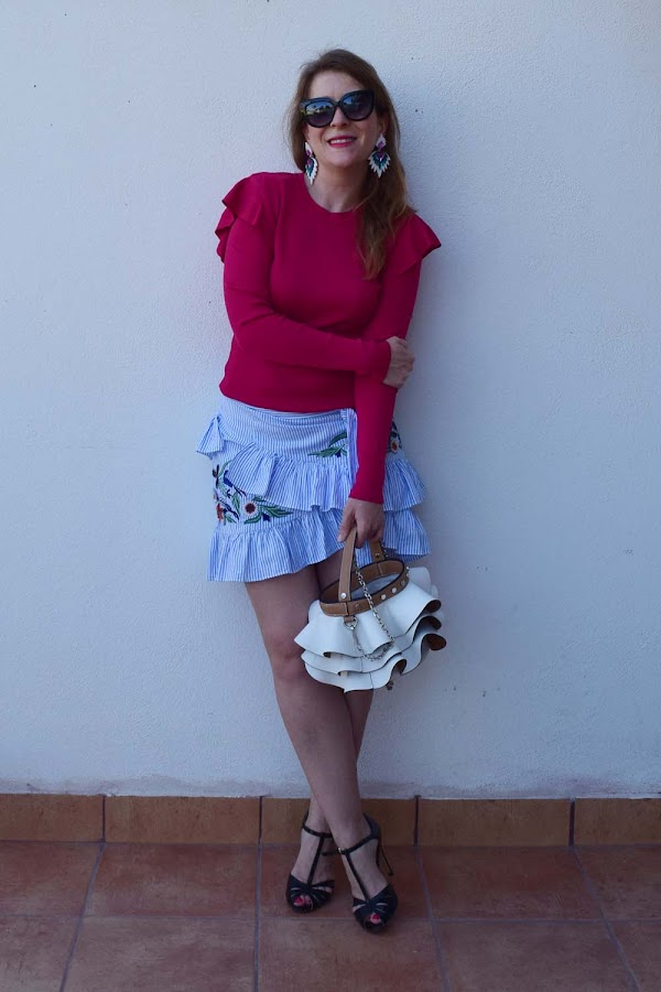 Vamos con los tres looks que he creado con esta falda de volantes y bordados.
