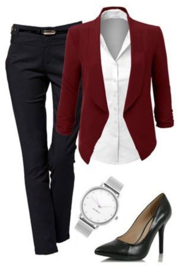 Hola a todas mis visitantes, después de mucho tiempo , les dejo, estas ideas con imágenes de ropa para oficina.Son modelos o sets de ropa muy practicas, que se pueden adaptar a las diferentes figuras. Ejemplo : la imagen 1 - Si usas todo la ropa monocromática o de un solo color, negro o azul en todo, se te vera estilizada y el complemento que es el abrigo, no romperá el conjunto.