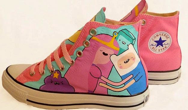 Mi primera propuesta es la de comprar unos plumones textiles en una tienda de Manualidades,luego dibujar algo que te guste sobre tus zapatos,en está foto podrás ver una forma muy personalizada de adornar el zapato.