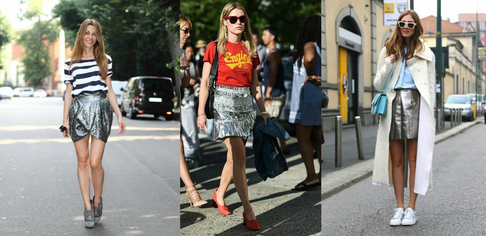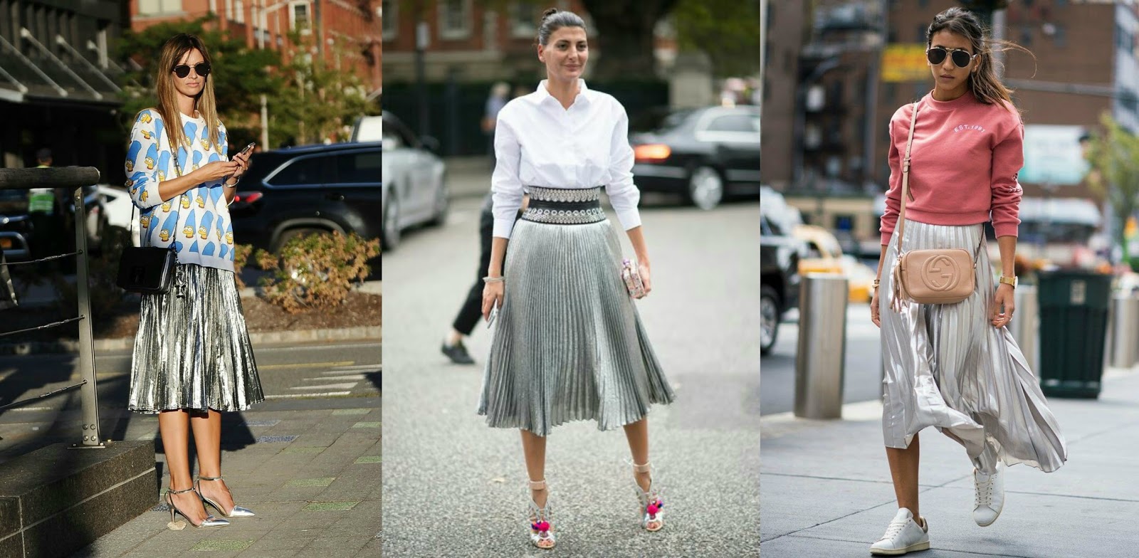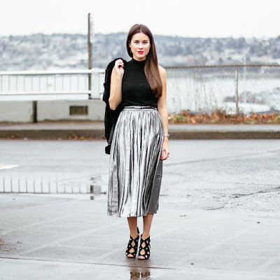 Hoy les voy a mostrar algunos tips para combinar una falda plateada, ya sea la mini laminada como la de corte clásico, como la actualmente falda midi plisada que tanto hemos visto en las redes sociales y portales de moda.