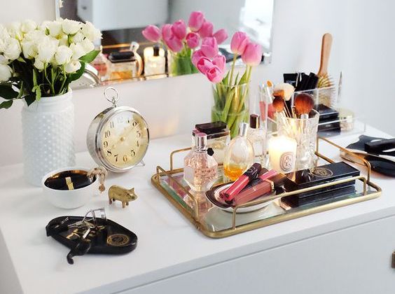 Elegir un lugar para cada cosa, además de preservar tus cosméticos te permitirá crear un espacio elegante, femenino y acogedor.