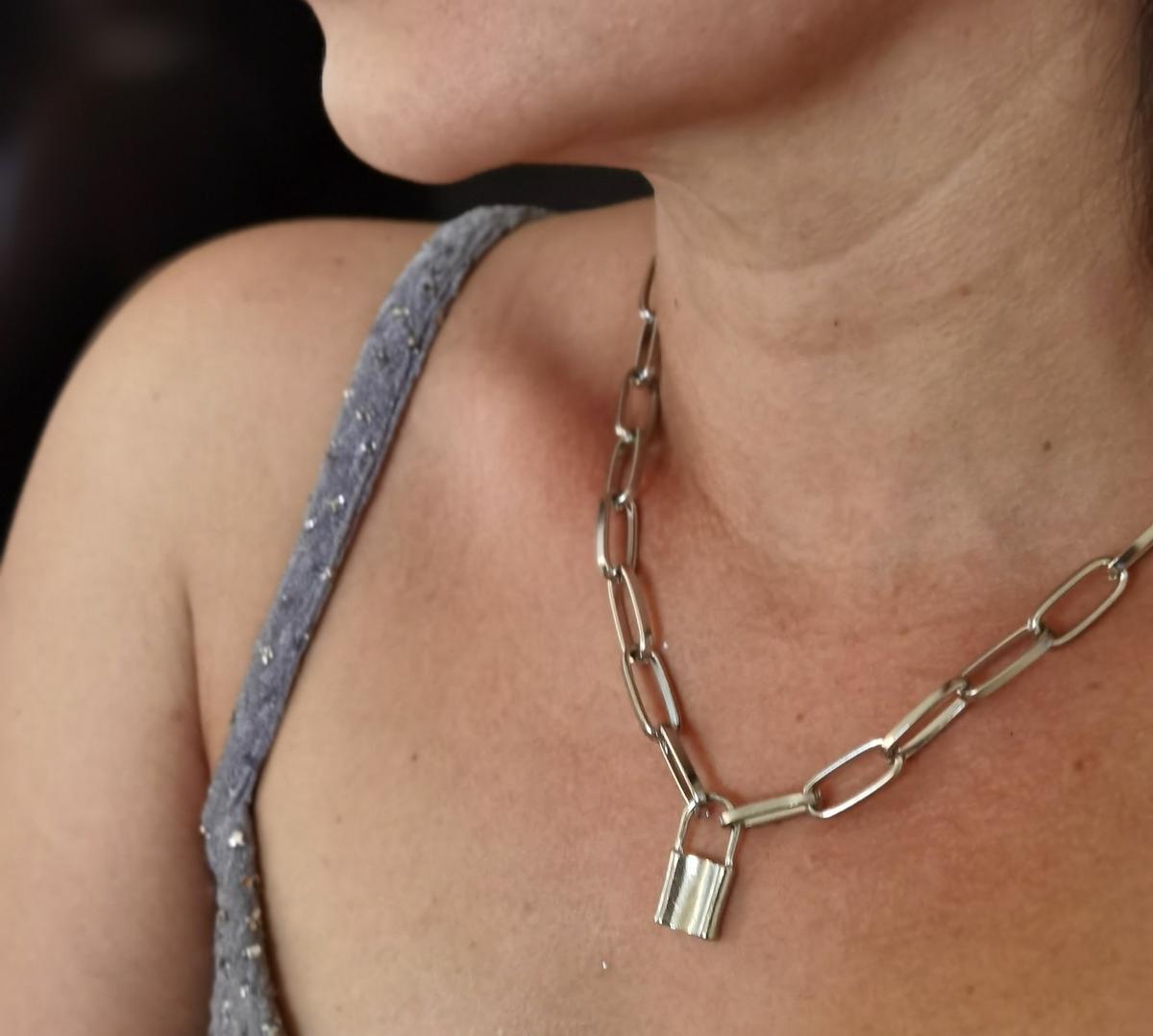 Los collares de eslabones con candados vinieron para quedarse, siempre había visto estos collares de eslabones con candados en dorado, y lo andaba buscando en plateado, así que cuando lo descubrí en Zaful, no dudé en hacerlo mío.