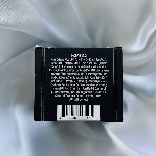Cannabidiol (aislado de cannabidiol), agua, alcohol cetearílico y polisorbato 60 (cera emulsionante), Persea.